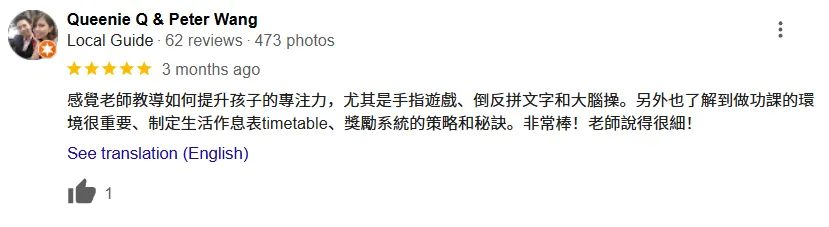 “我的孩子的词汇量变好,愿意配合学校老师,有自主思考的能力”